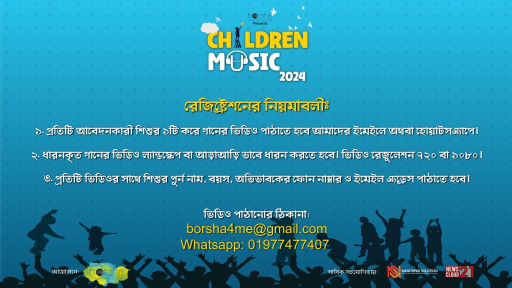বিঃদ্রঃ- 👉 প্রতিটি অংশগ্রহনকারী শিশুদের পাঠানো গান সোস্যাল মিডিয়া, ফেসবুক ও ইউটিউবে প্রচার করা হবে। সেক্ষেত্রে কোন অভিযোগ গ্রহণযোগ্য নয়।