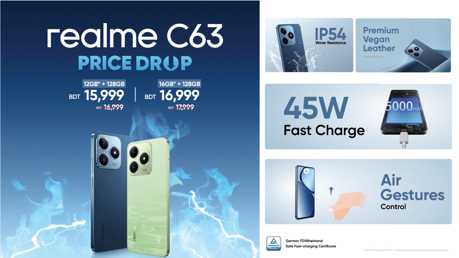 রিয়েলমির সি৬৩ ফোনটি টিইউভি রেইনল্যান্ড সেফ ফাস্ট-চার্জ সিস্টেম সার্টিফিকেশন পেয়েছে। চার্জিং সিস্টেম সর্বোচ্চ নিরাপত্তা মান পরীক্ষায় উত্তীর্ণ হলেই এই সার্টিফিকেট পাওয়া যায়।